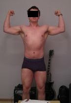 Mikael was featured in a client update in May last year. In the time that passed, he has gained lean mass and strength. Pictures below show Mikael at the end of his diet last year in comparison to his current condition. Body weight is identical, but body fat is clearly lower. I'd hazard a guess and say that he's approximately 10% body fat in the older pictures and 7-8% in the latest pictures. This is equal to a lean mass gain of ~4.5 lbs.