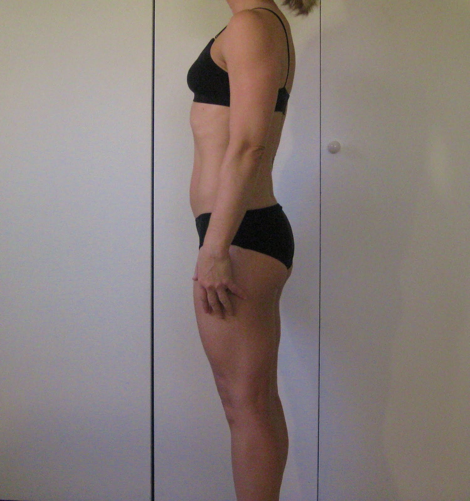 Olympic weightlifter Jill is a work in progress. Progress over 7 weeks is shown. Despite a minimal loss on scale weight (3.5 lbs), I think the improvements are very clear. Good example of bodyrecomposition.