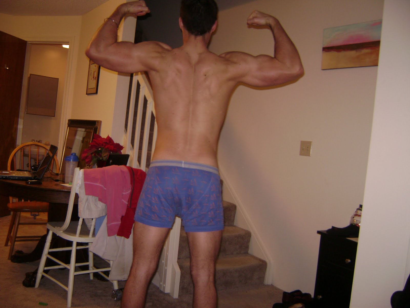 And just for the hell of it, Mikael's pre-diet pics at 203 lbs from last year. Quite a striking difference in comparison to his current lean condition.